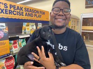 So, about the puppy. We adopted George from a rescue down the street from us! They have adoption events at petco every Saturday and we decided to just “go look”. We had looked at their animals online so we kind of had an idea of what they had to offer and what we wanted. I’ve always only had small 10 pound dogs but my husband wanted something bigger. After talking one night, I agreed that he could totally get a bigger dog and I would be perfectly open to experiencing life and sharing my love with someone larger! We woke up the next morning and went puppy browsing.