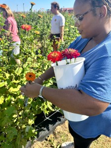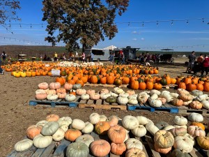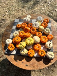 Before leaving, I checked the temperature to see what I was working with. To my surprise, the high that day was around 84 degrees which isn’t too bad for pumpkin and flower picking! I threw on a tshirt and leggings with my cute low top chucks and headed out to meet M! When we arrived, the layout was absolutely gorgeous!! There were so many pumpkins to choose from and the grounds were perfect for families and those with mobility issues.