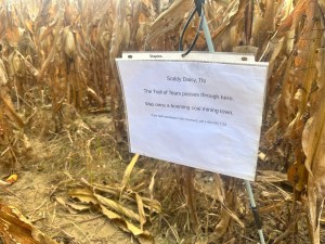 We also decided to keep it interesting and not use the google earth to get out but, I did turn on my Apple Watch just in case – it was no help at all, LOL. We entered into the maze with a group of people who we passed along the course of our escape. At one point, we were forced to go back to the very beginning and start completely over to make sure we remembered the directions we took. Throughout the maze, there were little signs that gave you facts about Tennessee. I am assuming that the different cities on the signs were supposed to help you remember the paths previously taken. The image also had a phone number that you could dial in case you were a freaking quitter. There was also an exit near the end of the maze for the literal quitters. The quitter exit was about 6 minutes from the actual exit which made using that route completely hilarious.